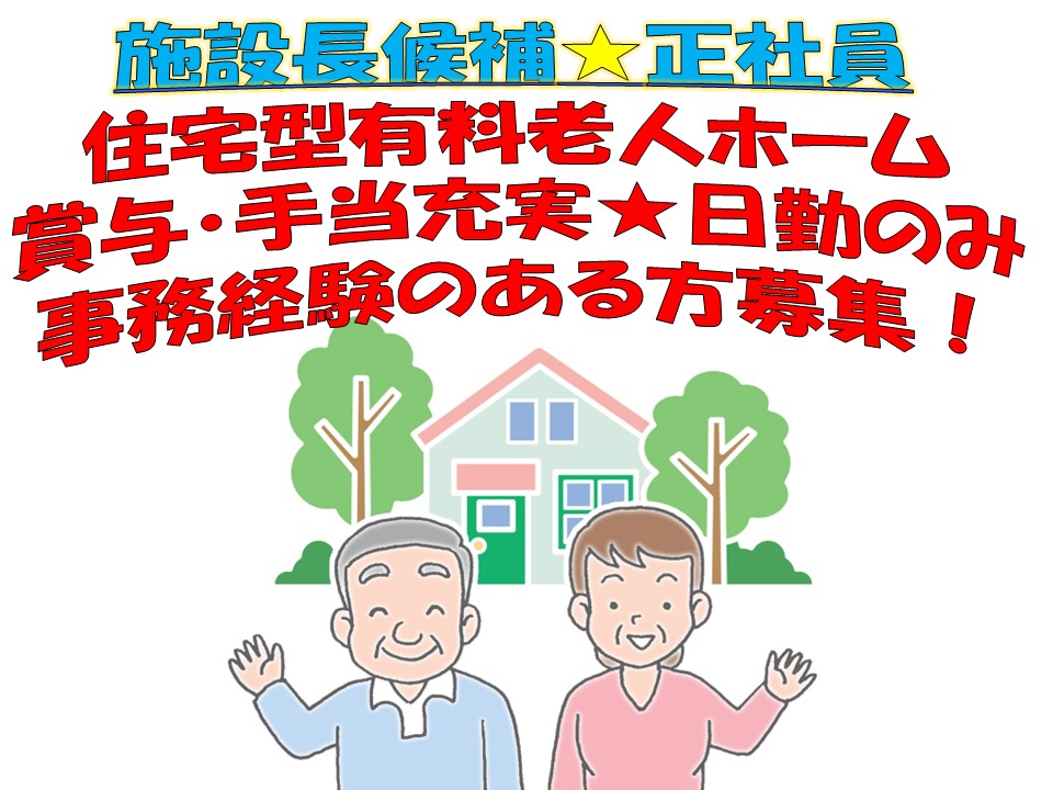 定員20名の住宅型有料老人ホームにて管理業務全般をお願いします。