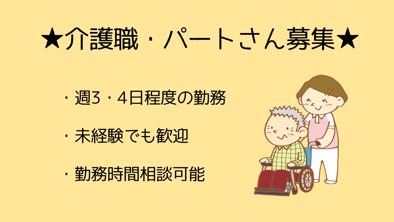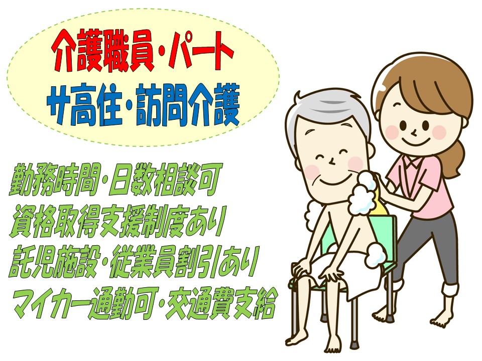 ※食事、排泄、入浴介助、送迎(軽自動車)、訪問、レクレーション等が主な業務です。