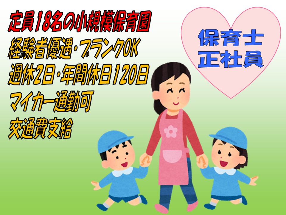 定員18名の少人数アットホームな保育園での保育業務をお願いします。