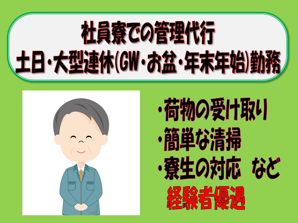 (株)グリーンハウスが管理・運営する社員寮で、土日の寮管理のお仕事。