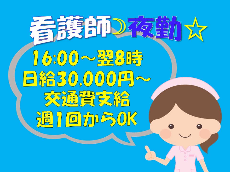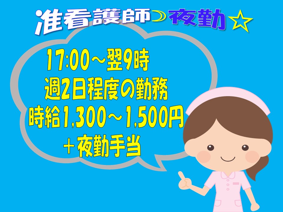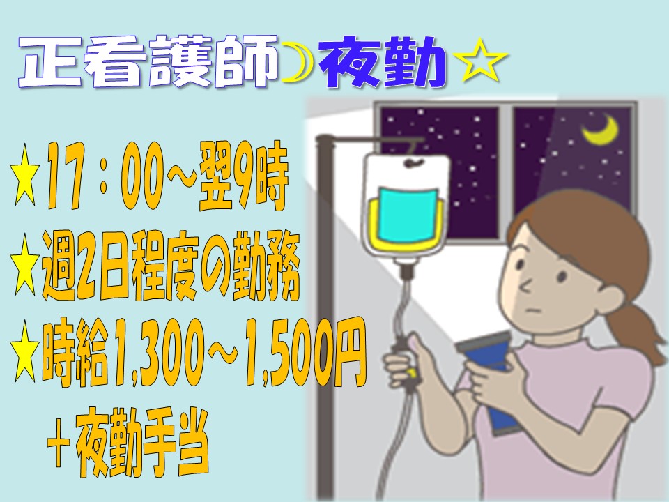 夕食介助、就寝介助、夜間の排泄介助、起床介助、朝食介助、医療的処置が必要な方に対しての看護業務を行って頂きます。