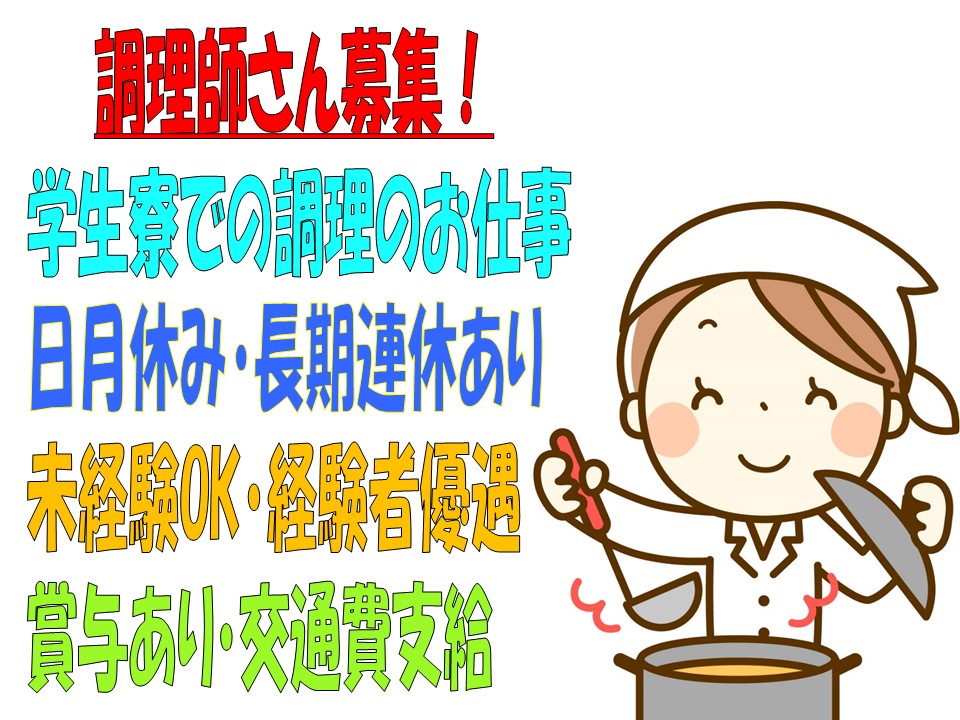 (株)グリーンハウスが管理・運営する学生寮食堂での調理のお仕事