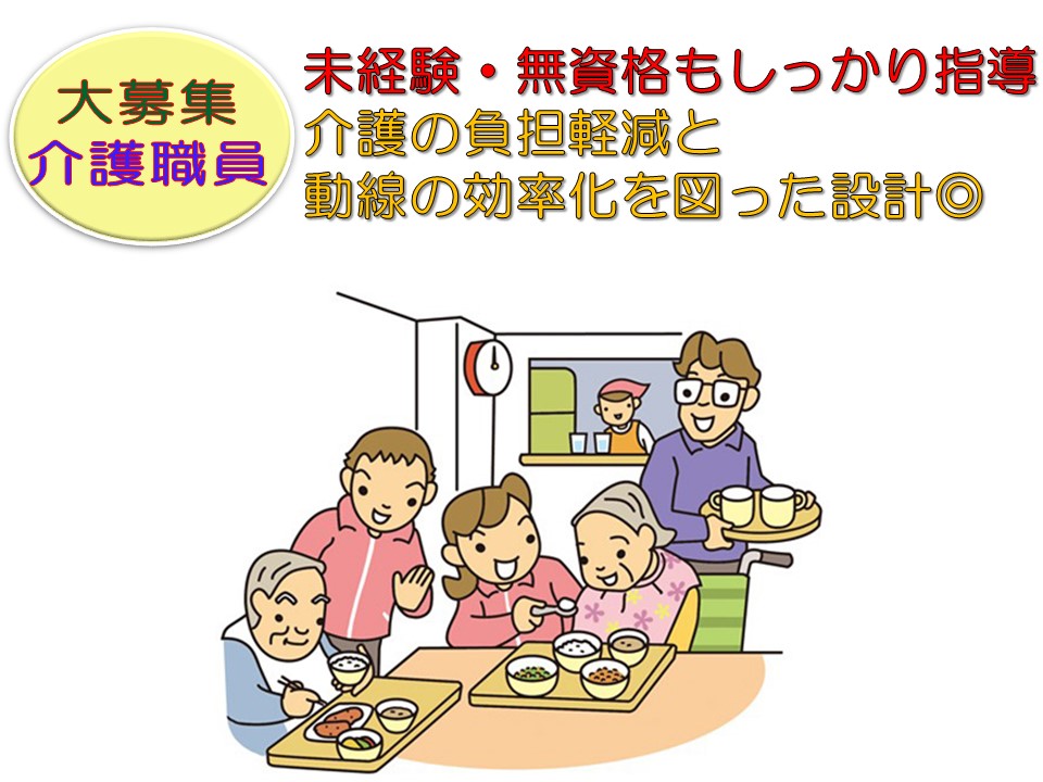 食事・排泄・入浴・口腔ケア等の介助等に関わって頂きます。