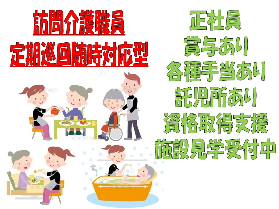 在宅で生活する要介護者に対して、定期訪問、電話による随時対応、及び必要時の随時訪問を行って頂きます。